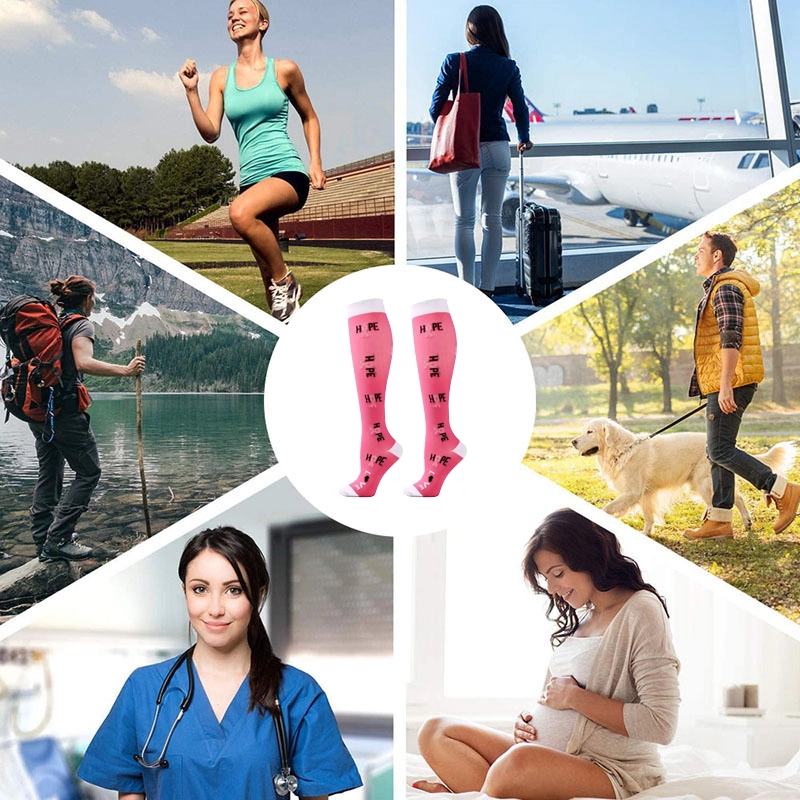 Portez l’espoir à vos pieds. Découvrez nos chaussettes de contention infirmière « Hope & Love », un design délicat et optimiste qui allie la performance de la compression graduée à un message empli de sens.